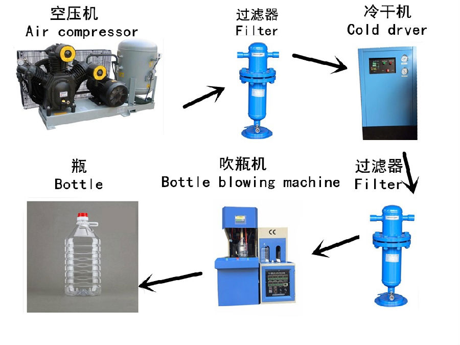 本設(shè)備適用于10毫升至5升以內(nèi)的產(chǎn)品,包含:煙油瓶、化妝品、礦泉水、食用油瓶、農(nóng)藥瓶、太空杯、小廣口瓶、蜂蜜瓶、汽車行業(yè)玻璃水、等產(chǎn)品。適用原料PET、Pete、Petg、PS、PC、PC、tritan、ABS等材料。 吹瓶過(guò)程
